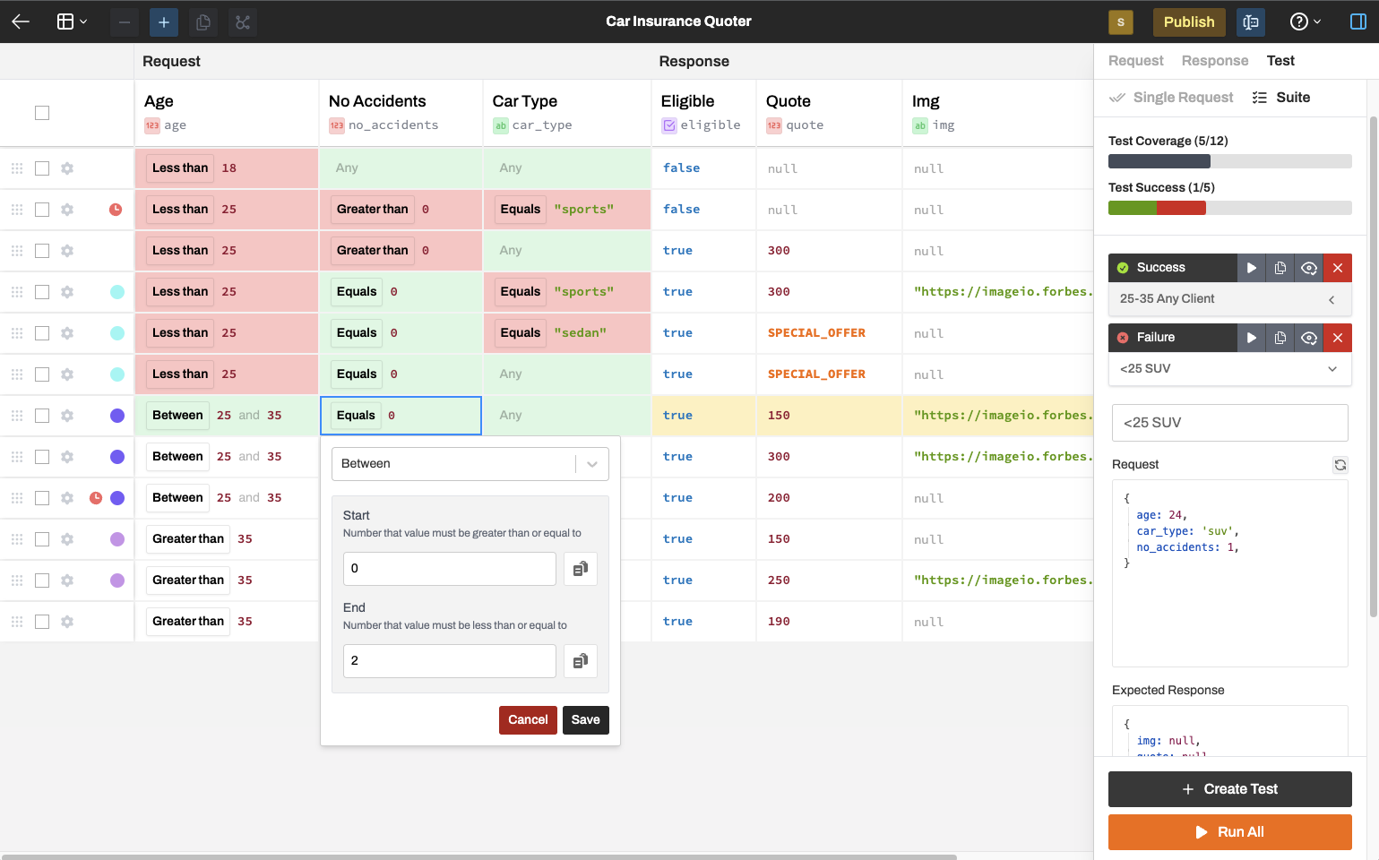 Build, save, & automate rich test suites to ensure your rules handle critical outcomes.